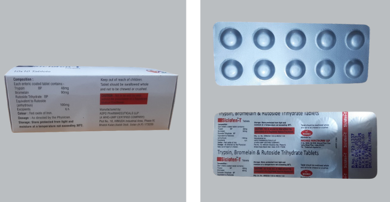 Each enteric coated tablet contains:- Trypsin BP 48mg, Bromelain 90mg, Rutoside Trihydrate BP Equivalent to Rutoside (anhydrous) 100mg