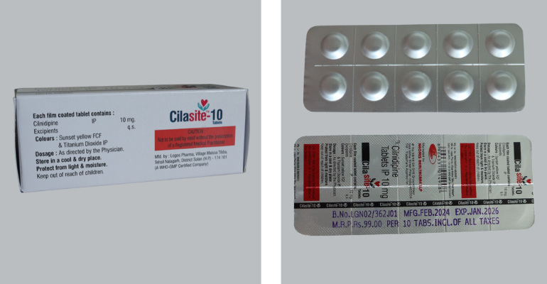 Each film coated tablet contains: Cilnidipin IP 10mg